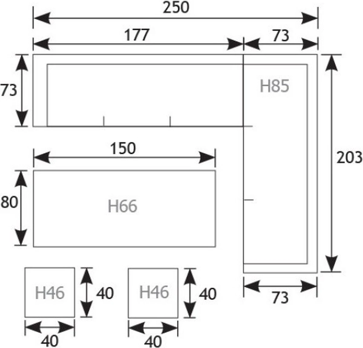 • Afmeting hoekbank: 251 x 205 x 85 cm