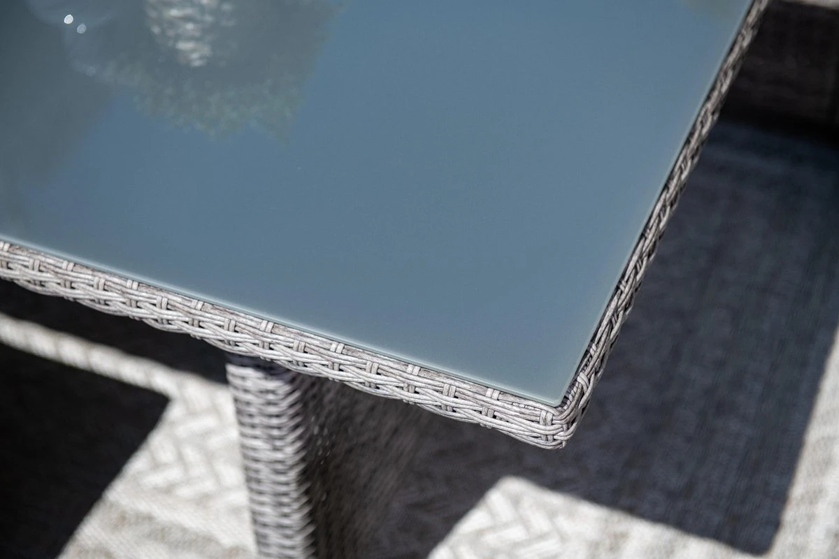 Ben je op zoek naar een comfortabele loungeset om heerlijk in te kunnen ontspannen, maar ook lekker in kunt eten? Met de Jaru lounge dining set hoef je geen moeilijke keuze meer te maken tussen een dining set of een loungeset. Deze mooie en ruime lounge dining set heeft het allebei! Deze set is vervaardigd uit een onderhoudsvrij aluminium met daaromheen weerbestendig wicker in de kleur organic grey, waardoor je het hele jaar kunt genieten van deze mooie lounge dining set. Het wicker is gemaakt van een stevig kunststof waardoor de set zeer duurzaam is. Deze set wordt compleet geleverd met hoogwaardige kwaliteit polyester zit- en rugkussens. De zitkussens zijn bovendien voorzien van een rits, waardoor de hoesjes met de hand gewassen kunnen worden. De kussens zijn niet 100% waterdicht, maar zijn wel voorzien van een waterafstotende coating. Dit is vooral erg praktisch als er bijvoorbeeld op het kussen wordt gemorst met drinken. Je veegt het vocht er namelijk gemakkelijk weer af. Na gebruik kunnen de kussens opgeborgen worden in de schuur of in een kussenbox. De ruime bijpassende lounge dining tafel is voorzien van een mooie geharde glasplaat. Deze lounge diningset bestaat uit twee losse bankdelen, een tafel en twee krukjes. De bankdelen kunnen aan de onderzijde door middel van clips eenvoudig aan elkaar vast worden gezet. Na ontvangst van de set moet alleen één armleuning en het onderstel van de tafel gemonteerd worden, dit is uiteraard eenvoudig zelf te doen. De Jaru lounge dining set is leverbaar in diverse kleurstellingen. De afmetingen van deze setopstelling zijn: L 255 x B 205 x H 85 cm. De tafel is 150 cm lang en 80 cm breed.