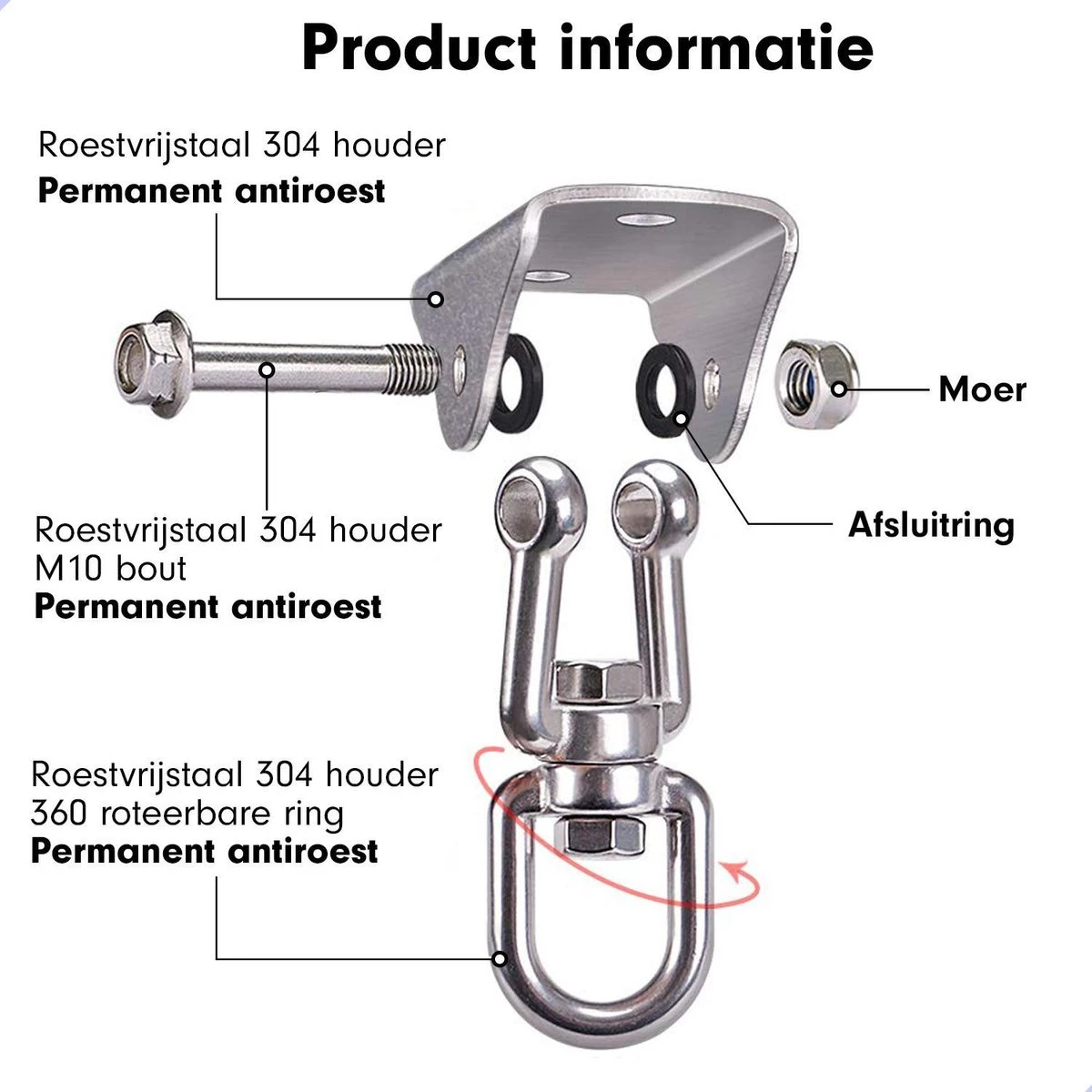 Luxe Ophangsysteem – 180° Schommelen, 360° Roteerbaar – Plafondhaak – Ophanghaak – Hangstoel Buiten – Hangstoel Binnen – Schommelstoel – Schommel – Bokszakken – RVS – Nederlandse Handleiding –