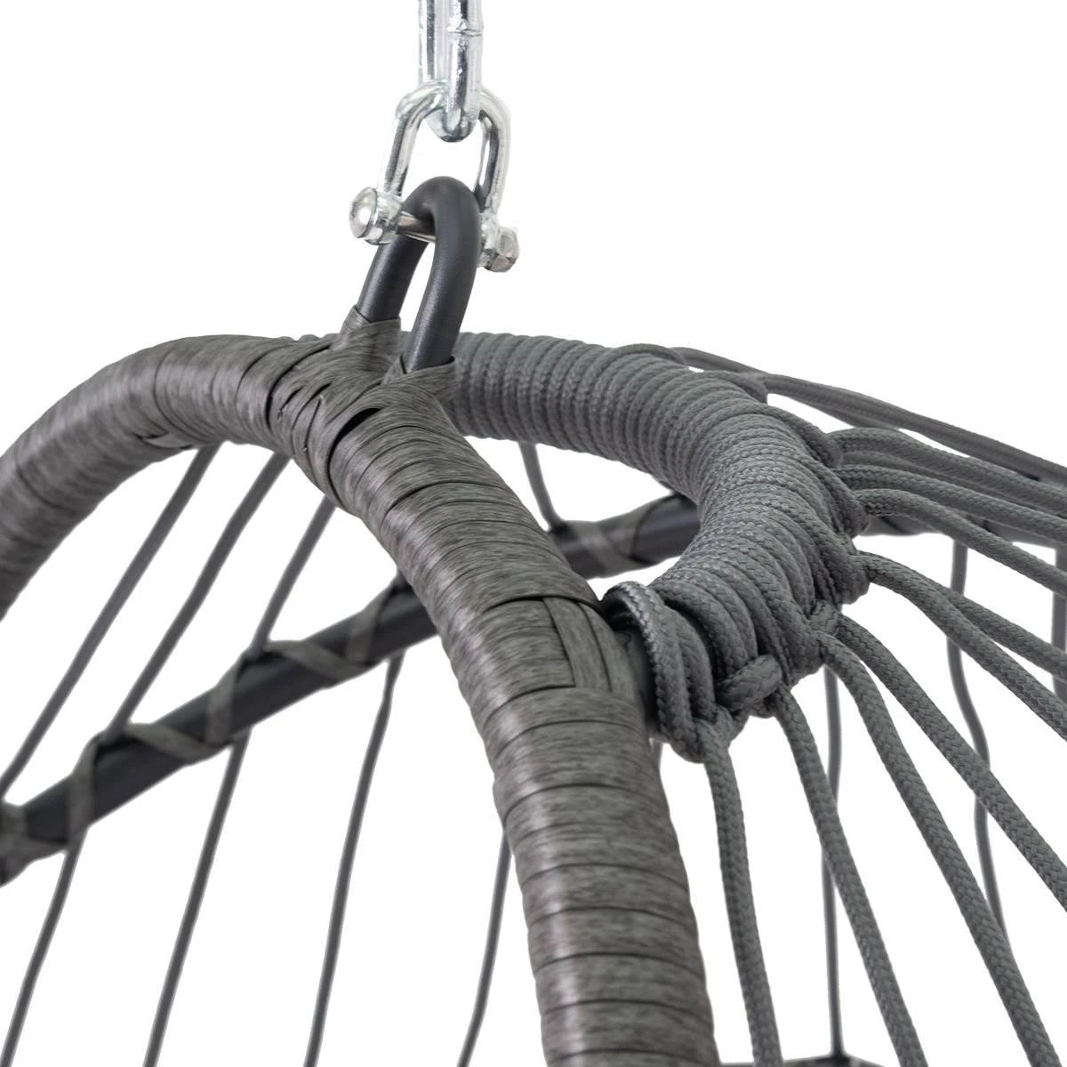 Pro Garden Lowander Hangstoel Egg 191x126x126- Schommelstoel Met Rattan Cocoon En Robuust Stalen Standaard Incl. Kussens – Volledig Inklapbaar – Lichtgrijs