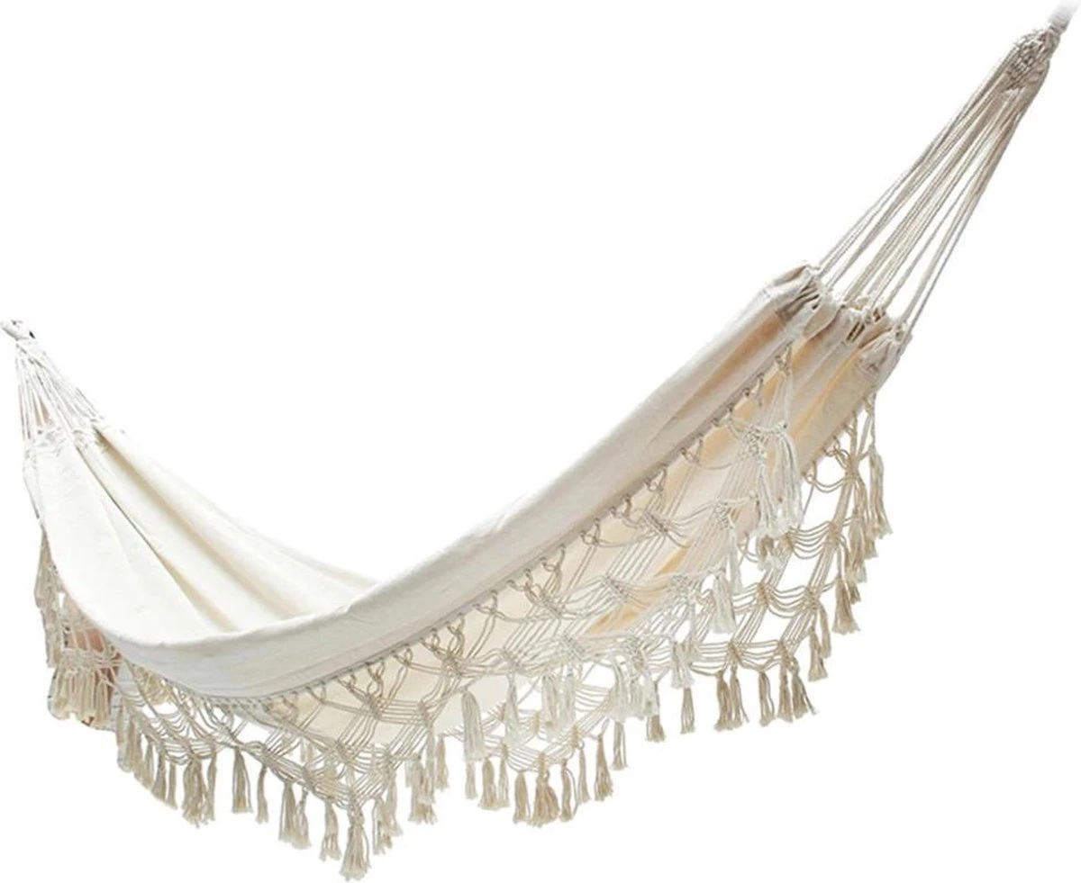 Zit je liever buiten in de natuur? Hang deze gadget dan in je tuin: aan een grote boom of onder een afdak. Creëer jouw eigen bohemian tuin met deze hangmat en nog andere boho-chic tuinaccessoires. Je waant je vast en zeker in betere oorden met deze gadget in jouw tuin. Of organiseer een echt cocooning feestje en vervang die saaie tuinstoelen door deze aangenamere, hangmat. Beter comfort gegarandeerd!