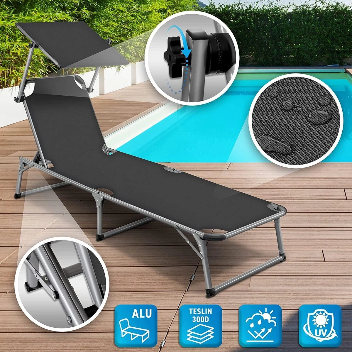 Sens Design Zonnebed – Ligbed Inklapbaar Met Zonneklep – Grijs