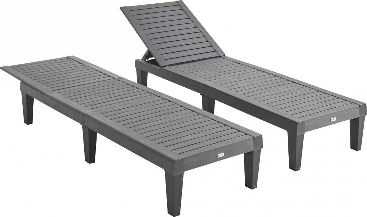 Doordat de ligstoelen gemaakt zijn van kunststof zijn ze makkelijk te onderhouden. De patronen van nagemaakt hout geven de stoelen een mooie afwerking.